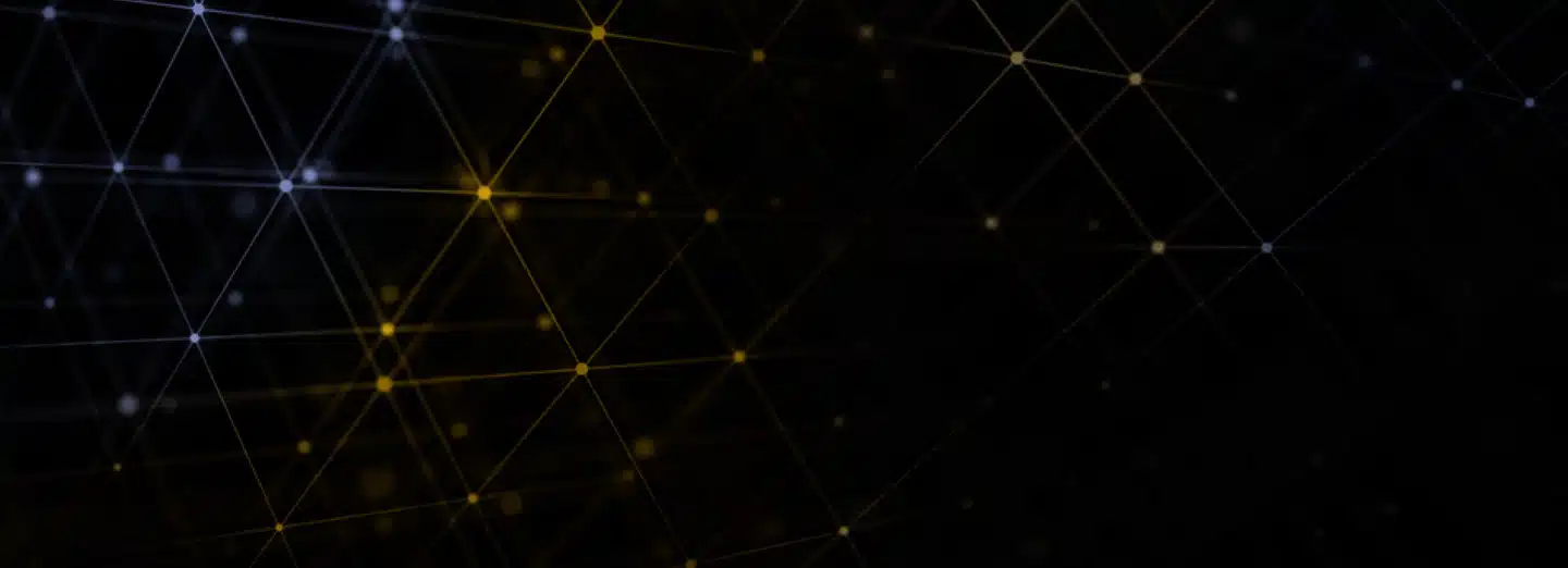 Geometric abstract background with ai-inspired intersecting yellow and white glowing lines forming a grid pattern on a dark gradient backdrop.